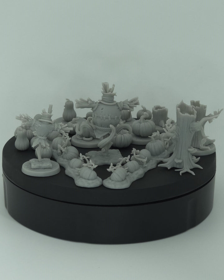 Blend jump scare ambushers with slow, looming threats to build tension over a single session, or use the set as a grab bag of horror for your campaign. Paint-friendly surfaces love primer, contrast paints, and glazes; textures pop with a quick drybrush. Pair this set with creatures from Owlbears or Slimes to stage haunted farms, orchard chases, or midnight graveyard runs.