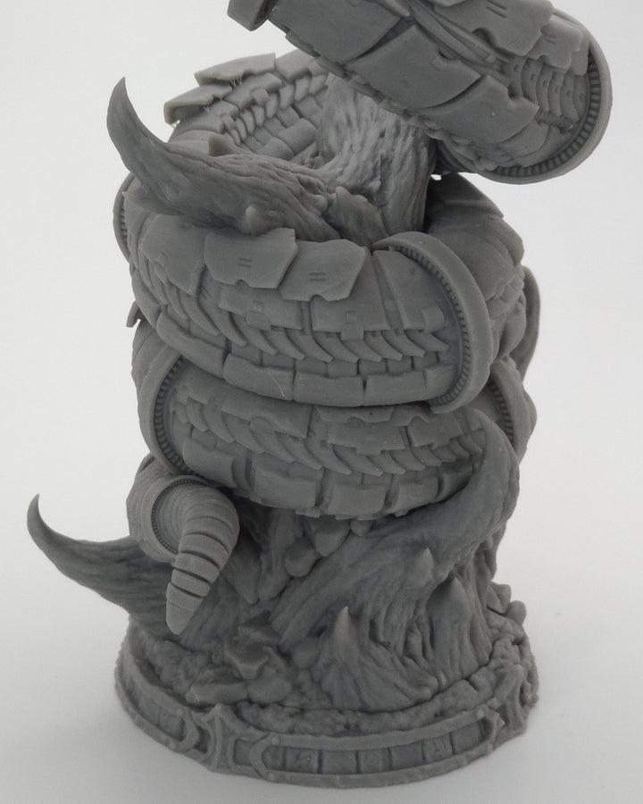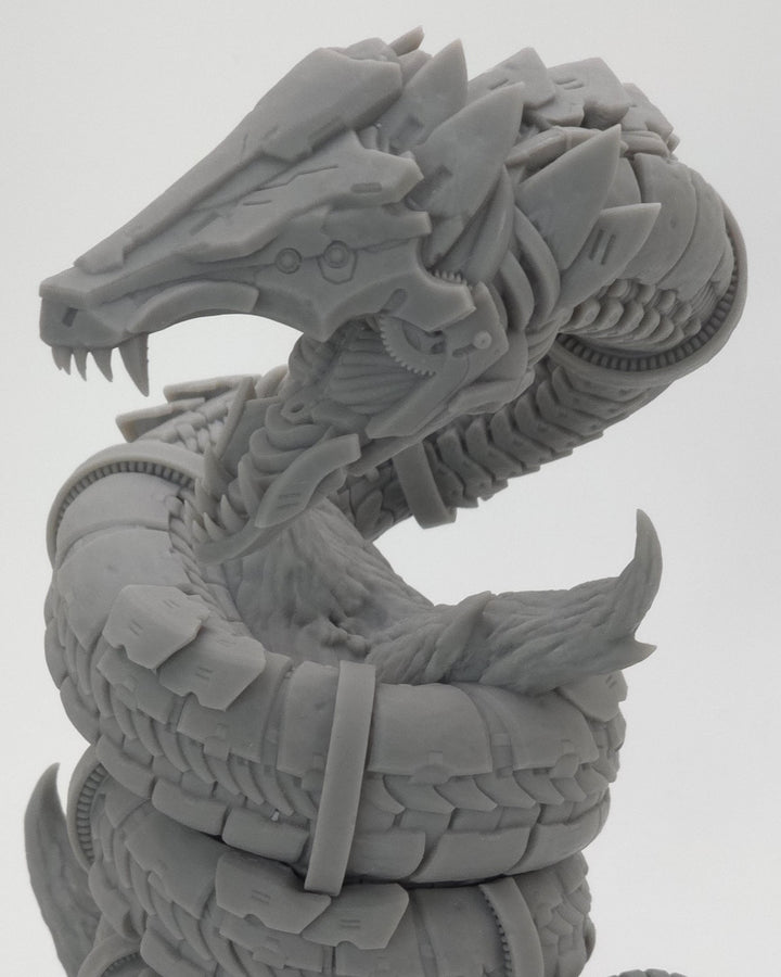 Unleash the Gearworn Serpent, a massive 3D-printed resin miniature built for Dungeons & Dragons, Pathfinder, and TTRPG campaigns that blend magic with invention.