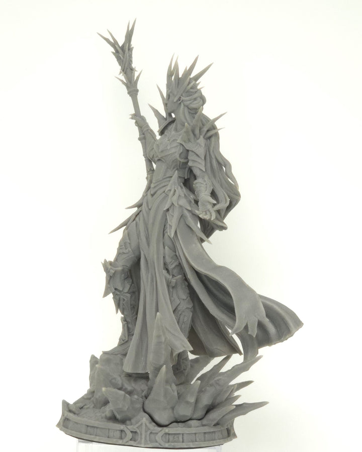 Cold grace and terrible beauty — the Frost Queen commands winter itself. Sculpted in 8k custom blend SLA resin, her flowing cloak, crystalline crown, and rising shards of ice capture the moment before a blizzard consumes the battlefield.
